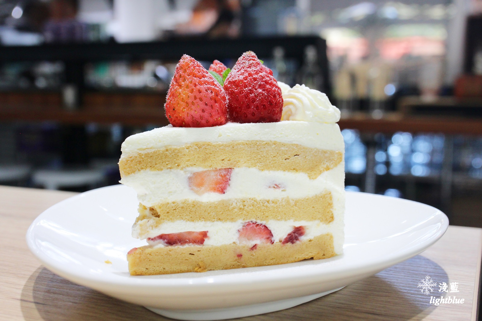 最後這款草莓奶油蛋糕可說是必點的經典款,可是這裡還是有用心做了變化,發現了蛋糕的顏色不太一樣嗎?這可是黑糖口味的戚風蛋糕呢!