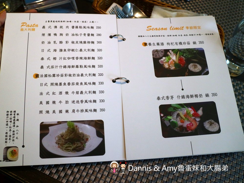 主餐部份有義大利麵、排餐、燉飯、焗烤,價格落在250~470元之間,