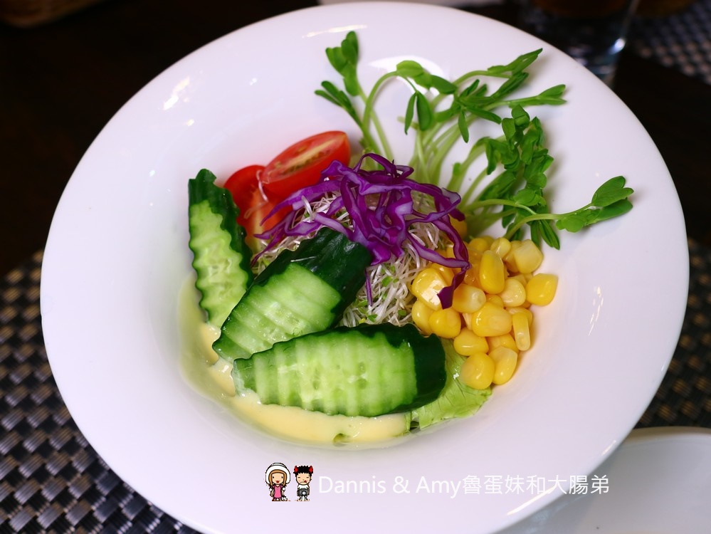沙拉的生菜有新鮮淋的是枊橙優格醬汁開胃又清爽。