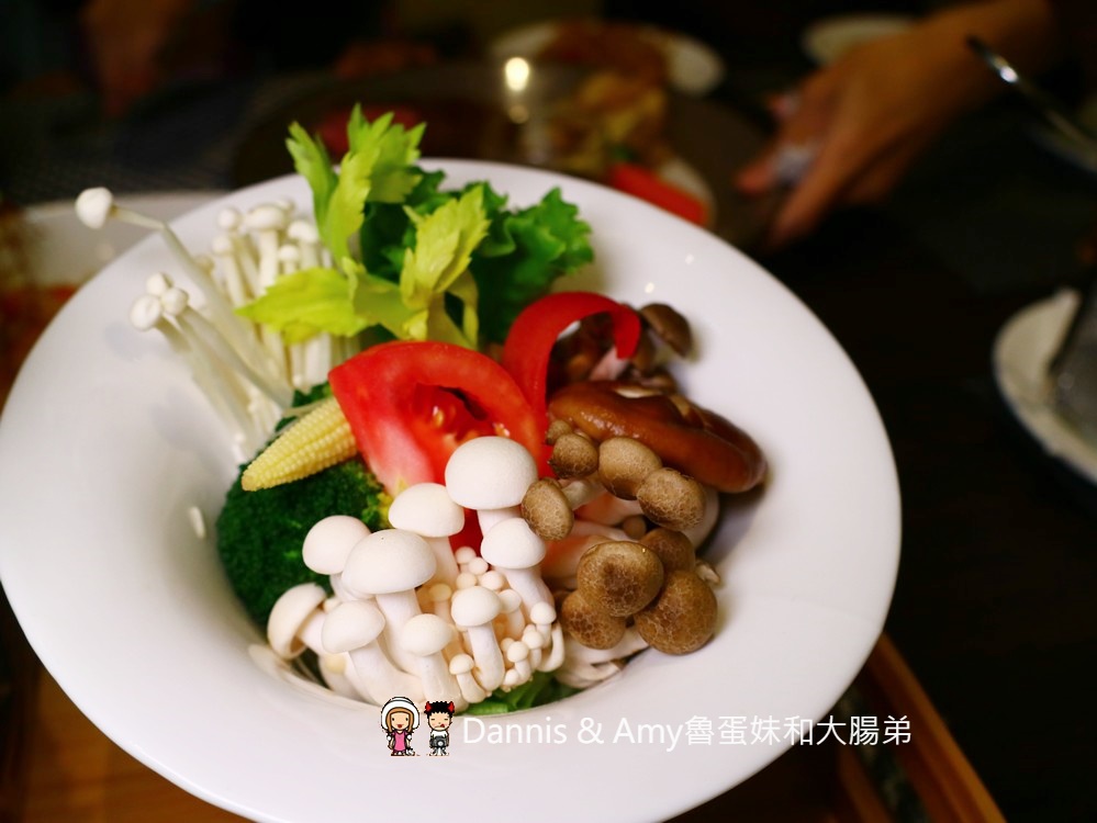 藥膳的湯底搭配大量的蔬菜和菇類,湯頭喝起來蠻清甜的,