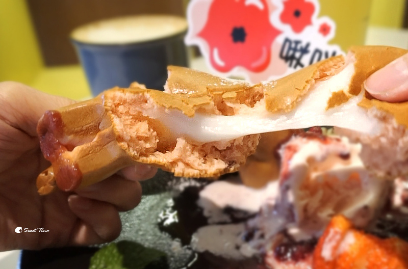 粉紅小象踩草莓 - 是季節限定的產品,從裡到外都以新鮮草莓為元素,草莓冰淇淋淋上了草莓醬,而小象鬆餅也是草莓口味的喔,吸晴又好吃。