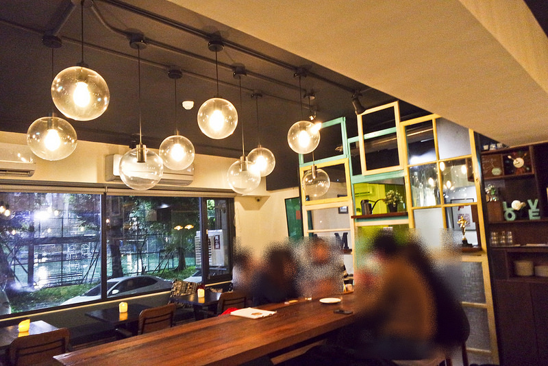 正面主要區域, 有長桌也有面窗的兩人小座位