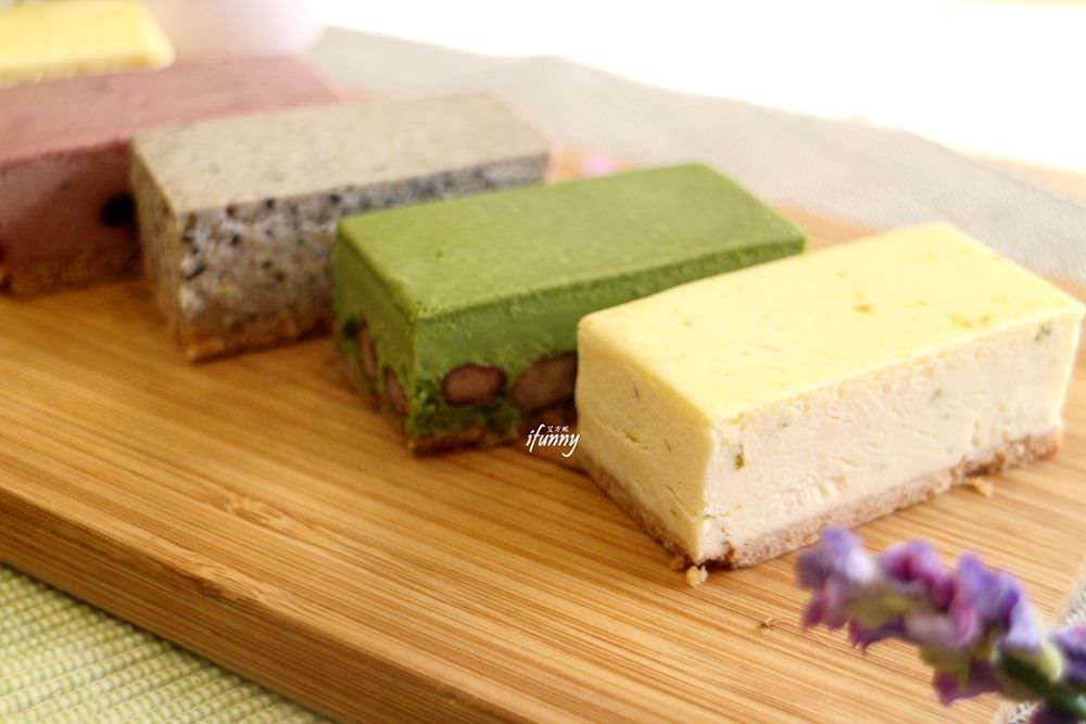 抹茶口味是採用來自日本愛知縣的西尾抹茶。西尾抹茶的特點是華麗出眾的香氣和深邃的茶鮮味,並且以堅持手工採摘為傲,它在日本的名聲完全不亞於宇治抹茶。果不其然入口的抹茶香味及尾韻的微苦,再搭上自製的蜜紅豆,有著多層次的口感。而這典雅細緻的滋味,令人想在午後捧上一本書,坐在有冬日暖陽的窗邊,嚐上一片抹茶乳酪,靜靜享受一段單純靜謚的時先。