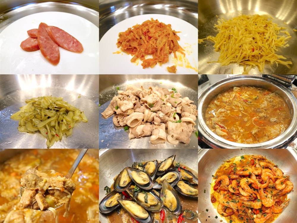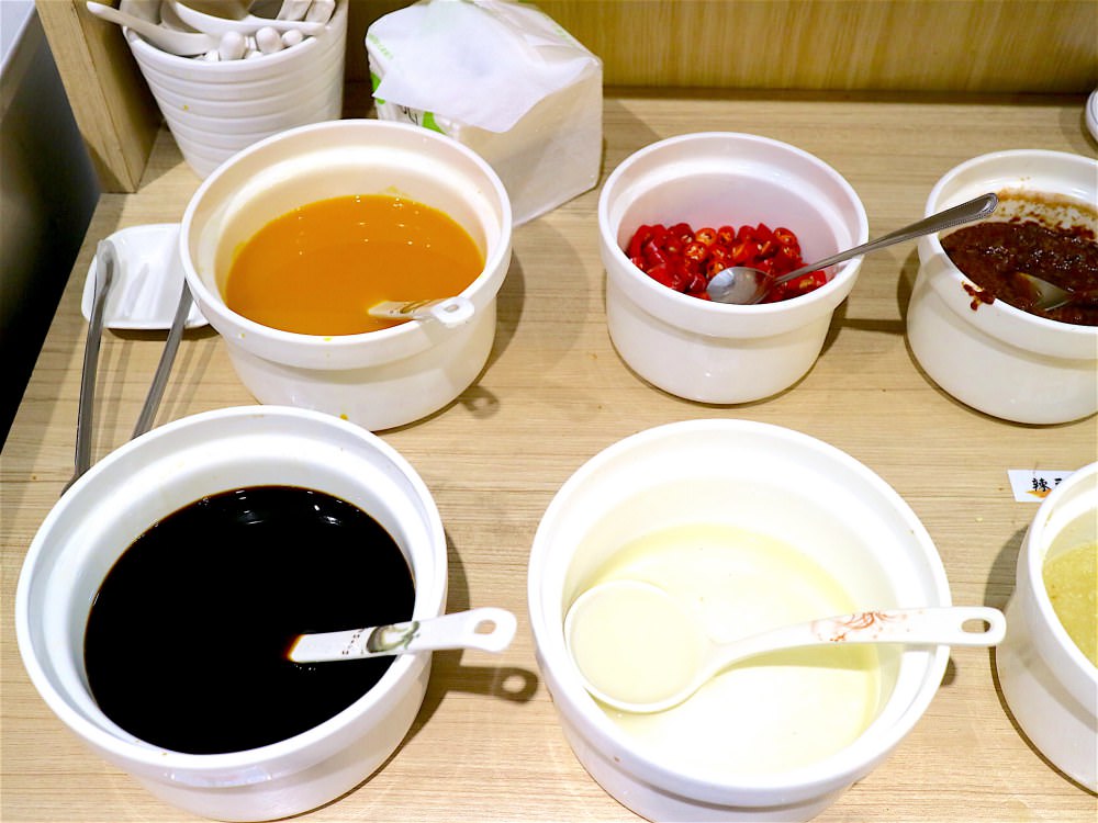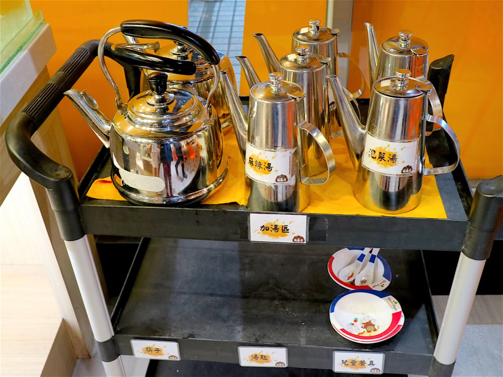 如果需要加湯,在生菜沙拉區旁的推車上有各式湯底,大家可以看自己需要哪種湯,自己來+