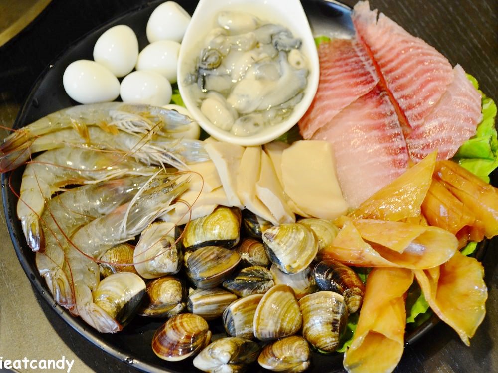 海鮮也挺澎派,最推薦的是其他店家少有的鮮蚵,不論是麻辣鍋、牛奶鍋,煮起來很好吃,連我平常都不吃的人,一半都被我吃完了~(我要不是需要留給老公,我早就全完食),畢竟鮮蚵、蛤蜊、蝦子都不便宜,能在吃到飽中吃到這些,簡直回本!還有鮑魚片、鯛魚片、阿根廷魷魚片、鳥蛋等。