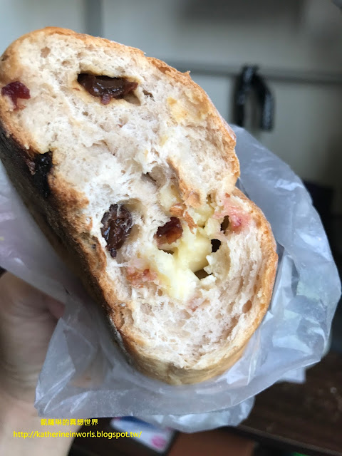 紅酒梅果_45元,蔓越莓和葡萄果乾經紅酒提味,加上乳酪鹹甜的口感,一吃成主顧。