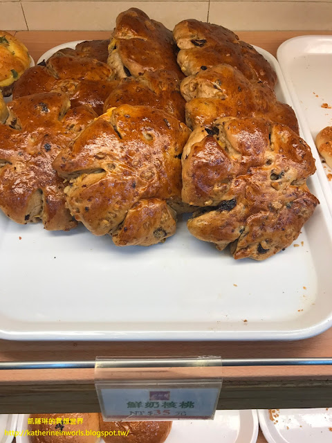 鮮奶核桃 _ 35元,採用老麵發酵,加入核桃、葡萄乾,紮實且健康滿分