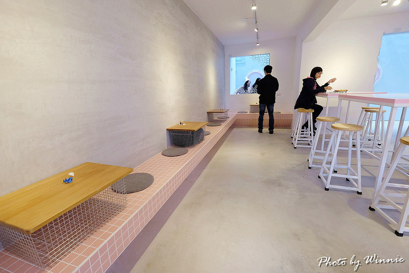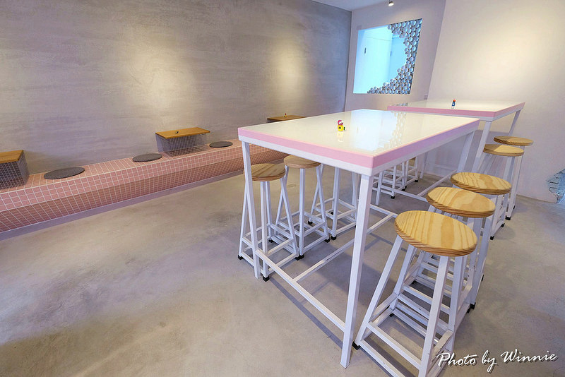 ▲延續著韓國特色的磁磚座位區風格,使用大量的粉紅色調,使整家店的氛圍就是浪漫中又帶著可愛tone調