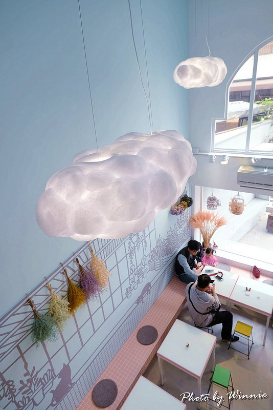 ▲從二樓處也可以往下看到一樓的用餐客席區,從這個角度也超可愛的雲朵燈似乎離我們更靠近了
