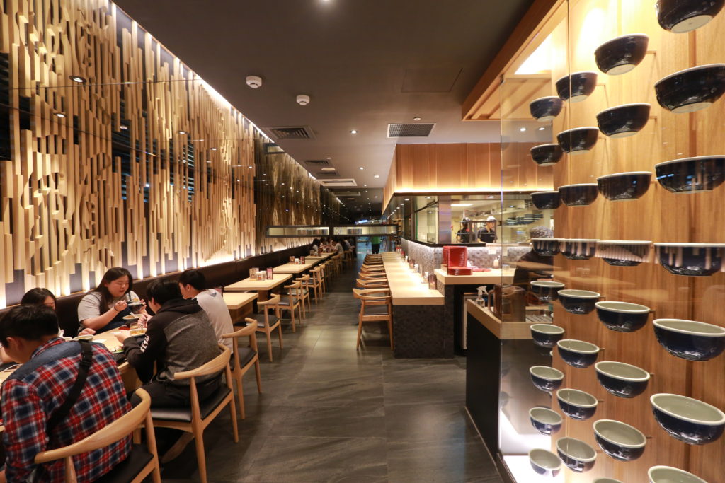 再往裡面走一點,座位數很多,還好我是中午來的,不用什麼排隊,後面陸續就快坐滿,店裡面採日式裝橫風格,座位區很舒適呢~~旁邊還有拉麵碗裝的裝飾牆
