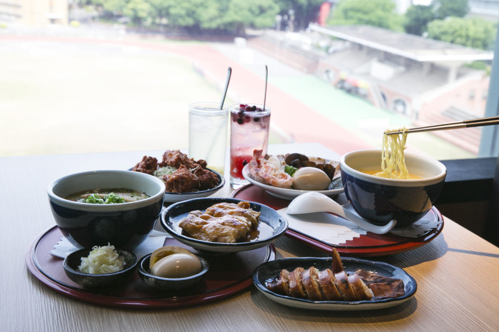 最裡頭是一片大玻璃~不時可以看到成大的操場有人在跑步呢~~一邊吃得美味拉麵,一邊依偎的陽光,與美景,這真的是太幸福了
