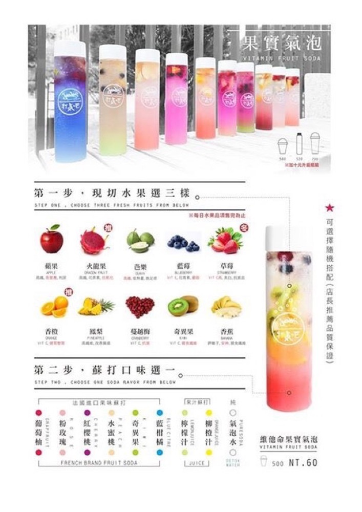 店內招牌氣泡水非他莫屬啦,汽泡水可以釋放水果的維他命,