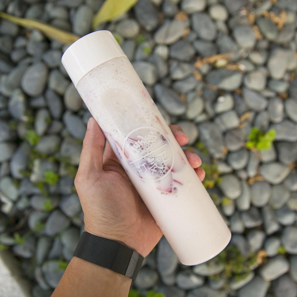 濃濃奶香味,裡頭搭配草莓果粒,喝的時候草莓酸微酸微,與牛奶搭配起來,口感很豐富呢~