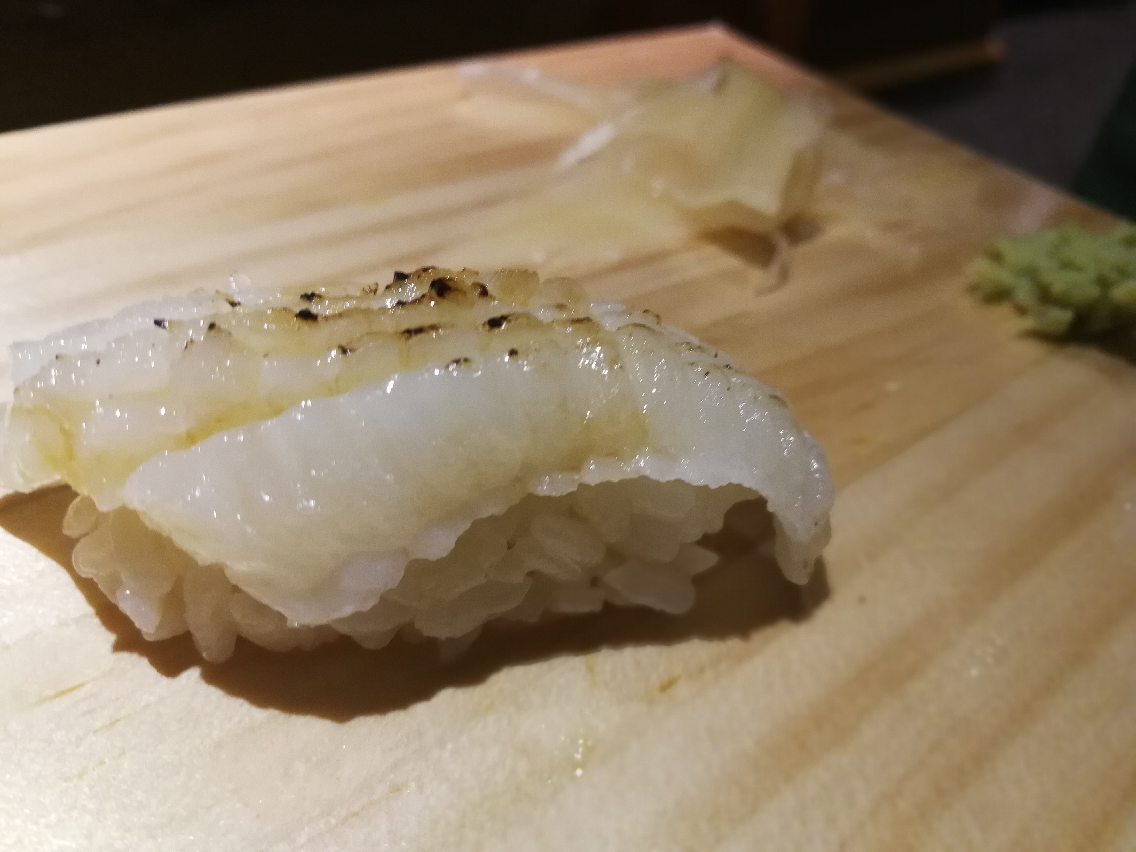 第十二道 - 炙燒比目魚鰭邊握壽司