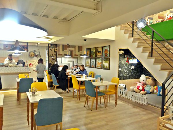 還沒進門前以為店裡空間不大,沒想到推開門才發現,挑高式的樓中樓設計讓空間看起來變得寬敞許多,以暖色系為主調的裝潢和明亮的燈光非常溫馨,讓人有種回到家的感覺。