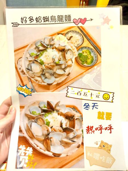 沙朗心牛排飯和好多蛤蠣烏龍麵都是新品所以尚未被列入菜單上,點餐時直接跟店家說就好。