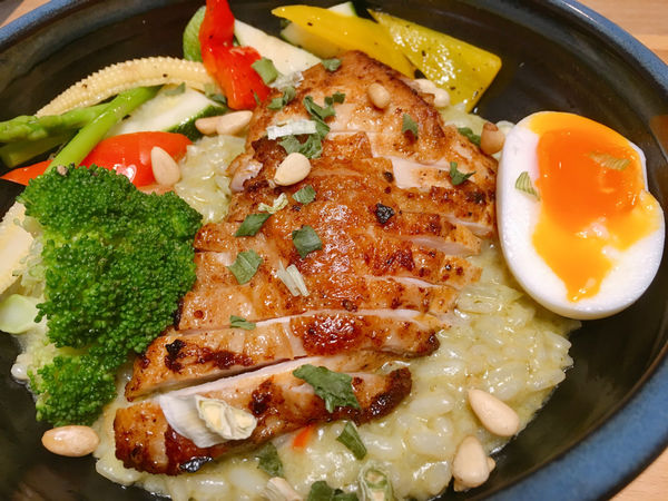 有心雞是來自彰化履歷合作飼養,經脈盡斷的雞胸,肉質鮮嫩juicy,好吃度榮登五燈獎寶座(從燉飯中乍現小當家的光芒)