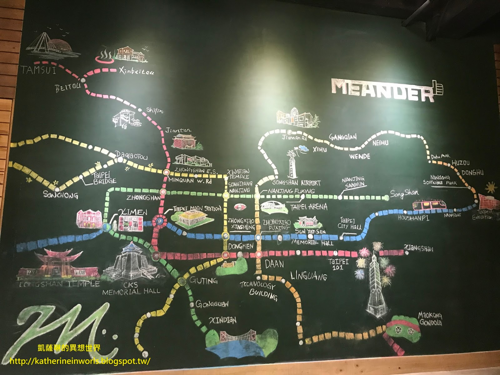 漫步旅店 Meander Hostel非常貼心撰畫出周遭台灣景點,搭乘捷運線的顏色,秉持著台灣最廣為人知的熱情、友善的民族性,把每個人當成家人、朋友,把我們所知道最美麗的台灣城市特色、民俗風情、自然景觀都介紹給你,讓凱薩琳感受到滿滿的用心。