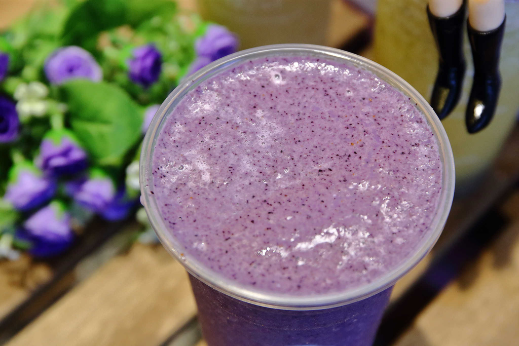 藍莓的風味濃郁,搭配牛奶打成果汁,還能吃得到藍莓顆粒,感覺有類似戀愛的酸甜感喔!