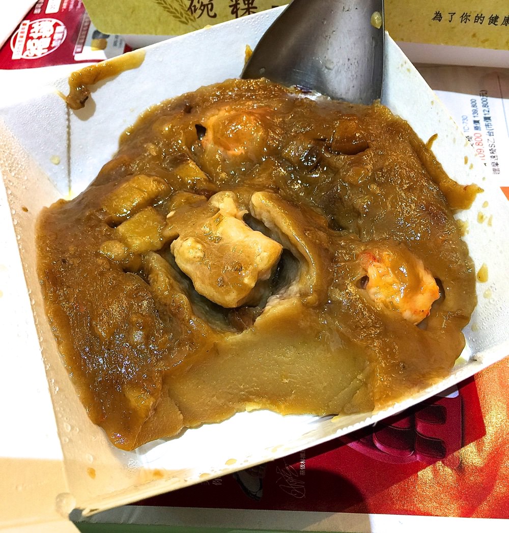 打開紙盒,就能看到黑亮的碗粿,而且感覺料很多!