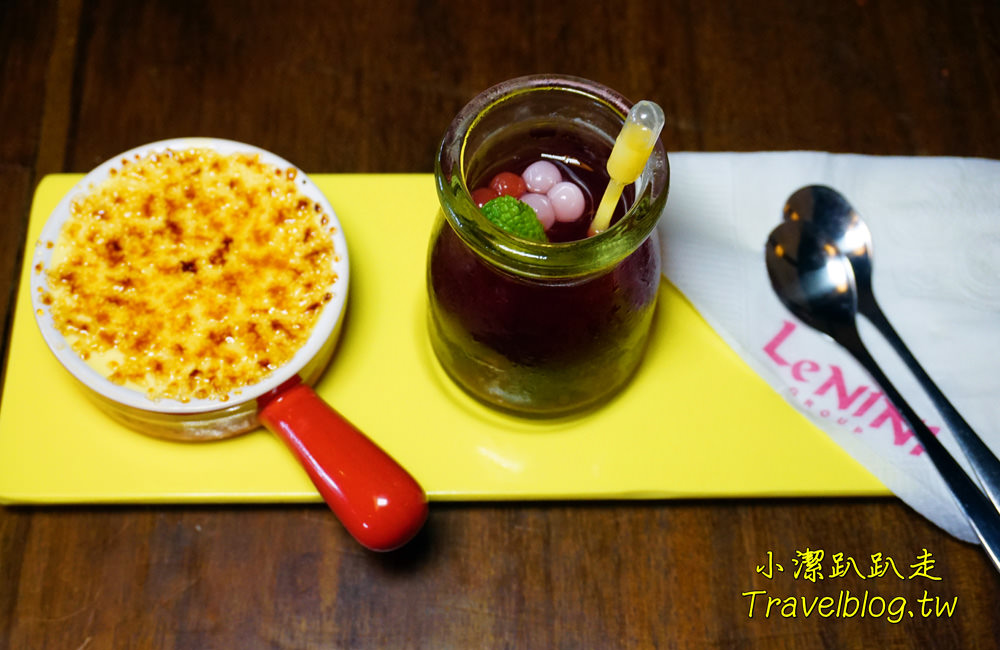 附餐飲料,單純只想解渴解膩,我們選了熱美式咖啡、冰可樂,套餐附的甜點《義式烤布蕾、紫色魔力果凍》造型好少女喔!