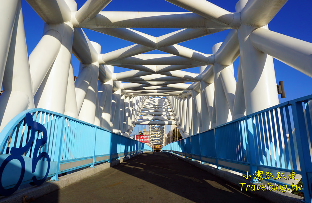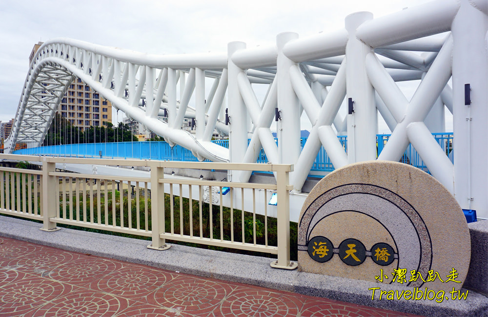 漂亮吧!這裡就在台中市北屯區松竹五路橫跨旱溪東路跟旱溪西路的海天橋(景觀橋),藍白相間設計而成的陸橋,給人有一種很療癒的寧靜、舒服的感覺。
