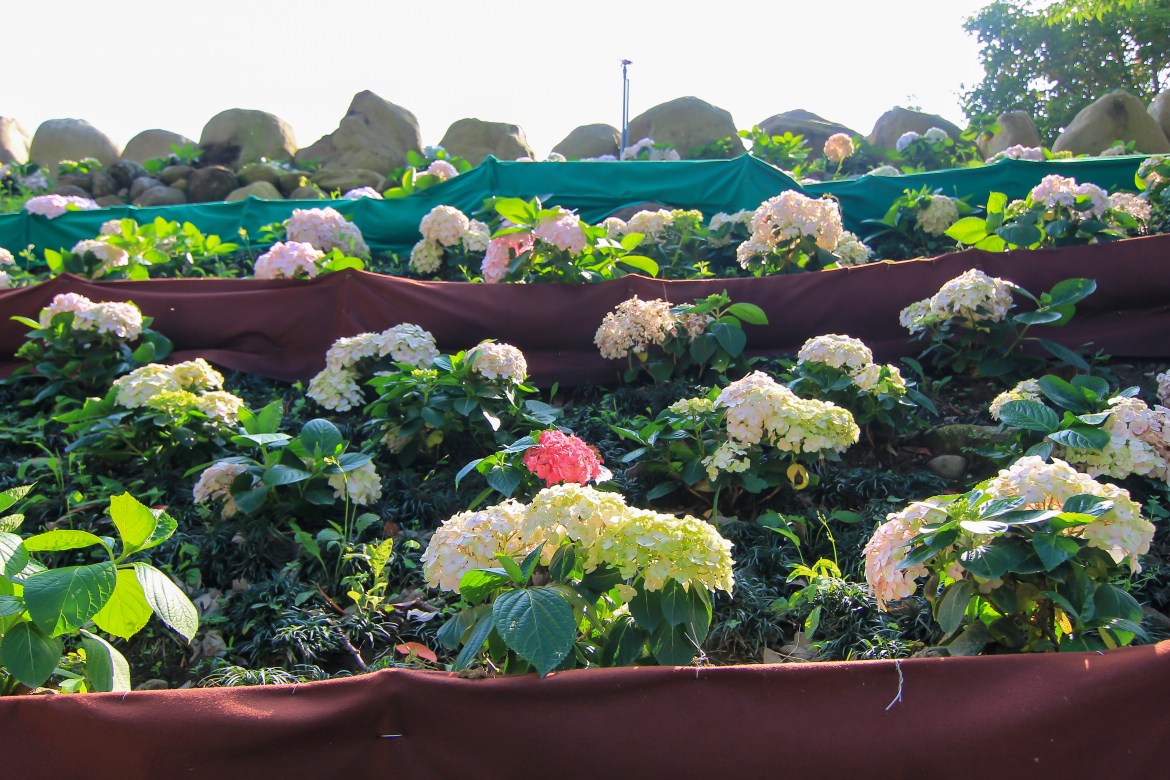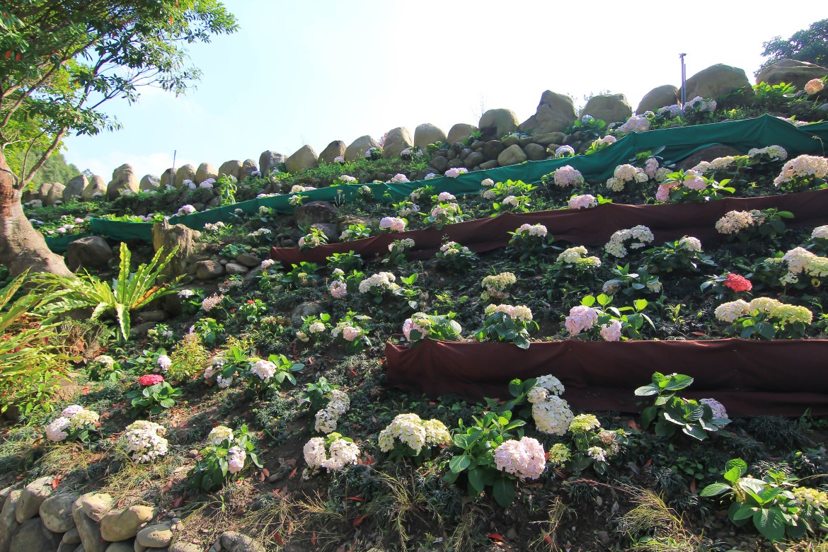 繼續往上步行,旁邊有一整排的繡球花。