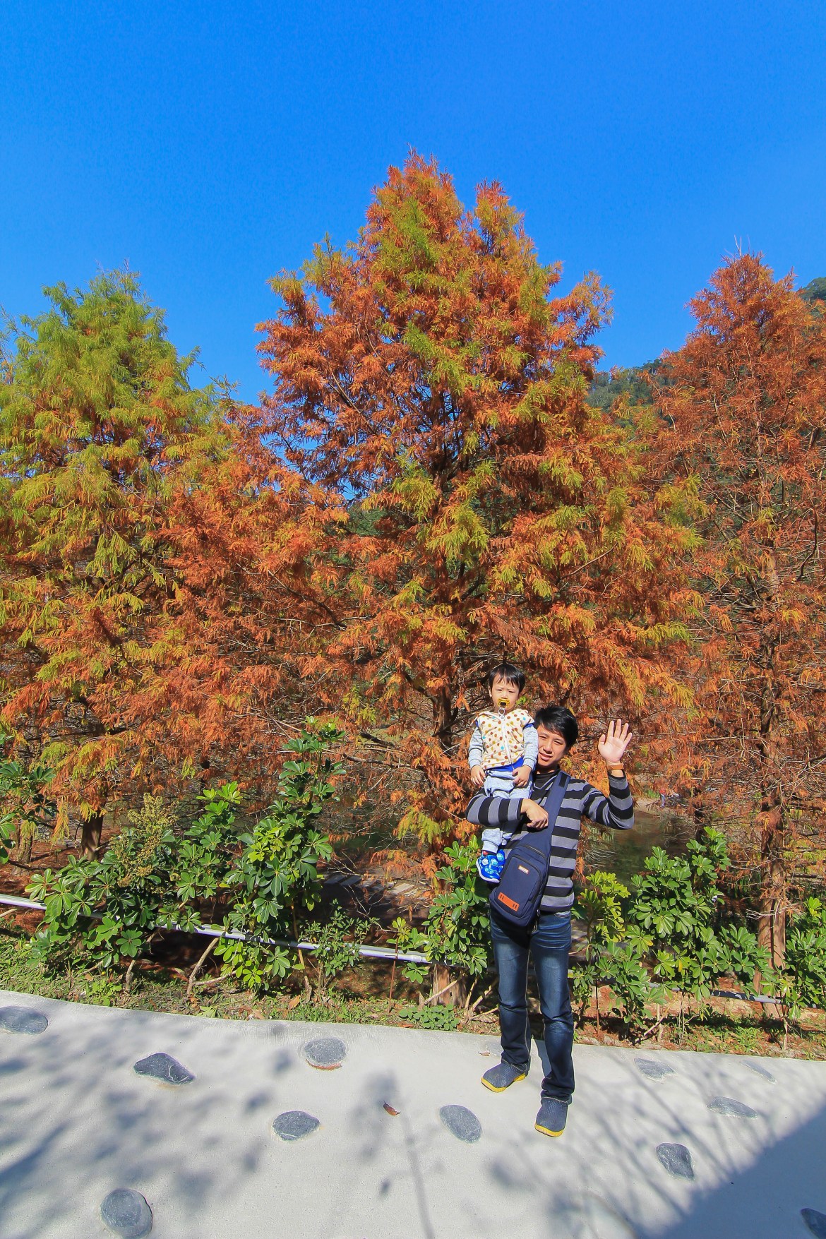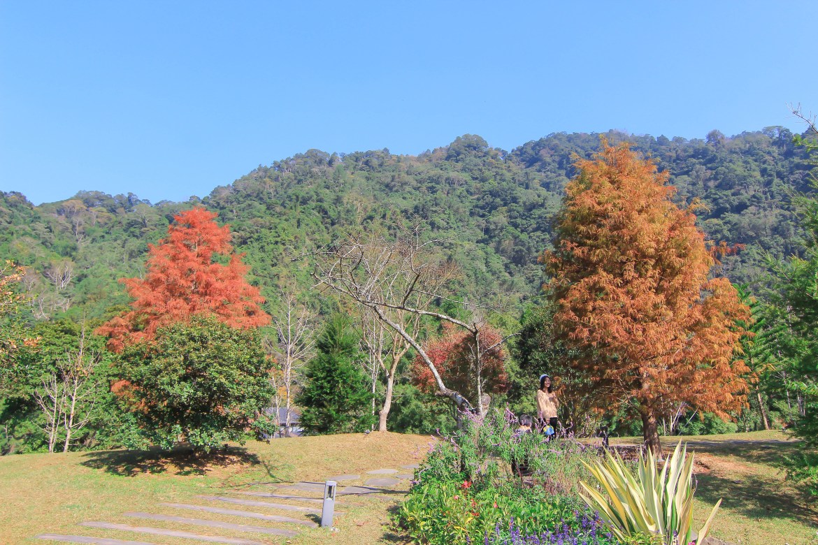 落羽松非常的大顆,配上鮮豔的花園..