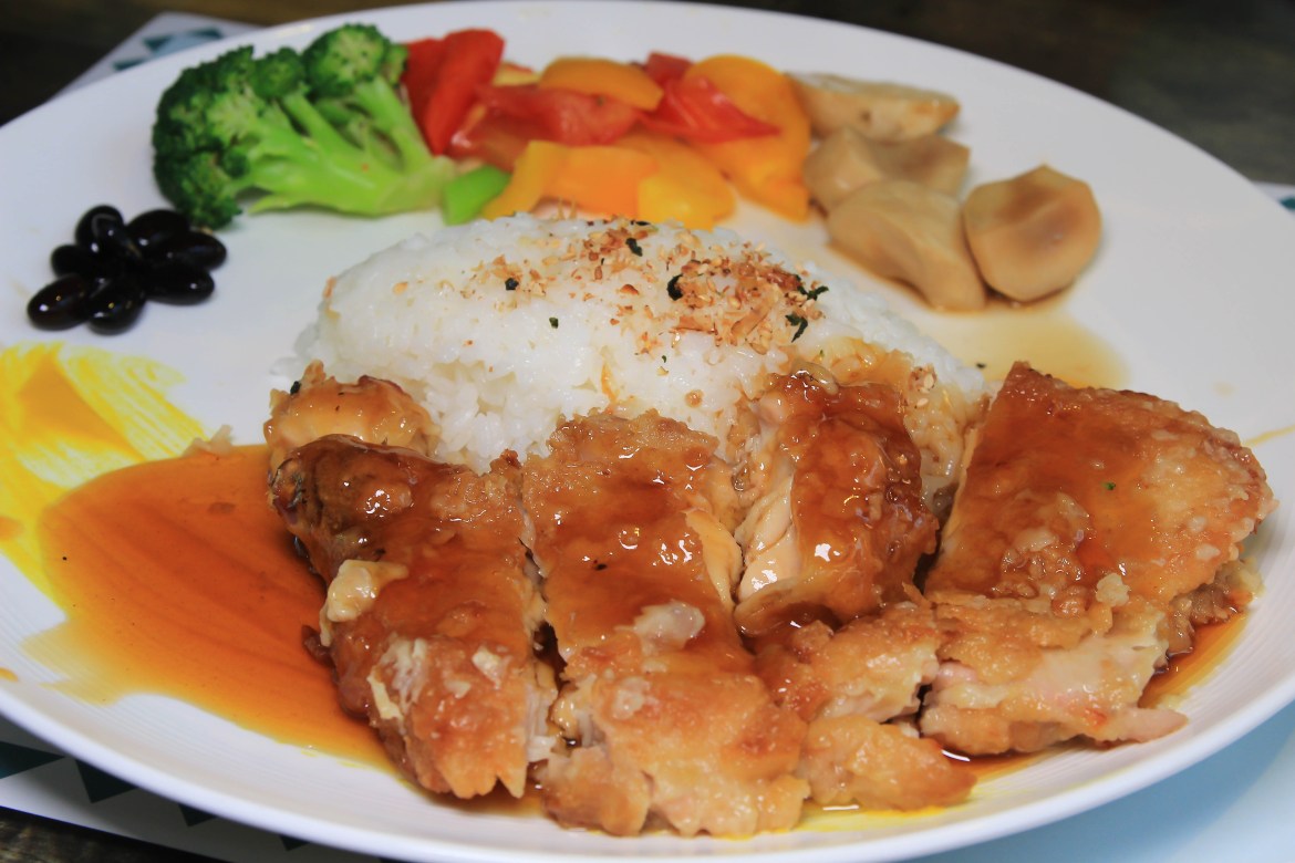 像是便當的菜色,過甜的雞腿,