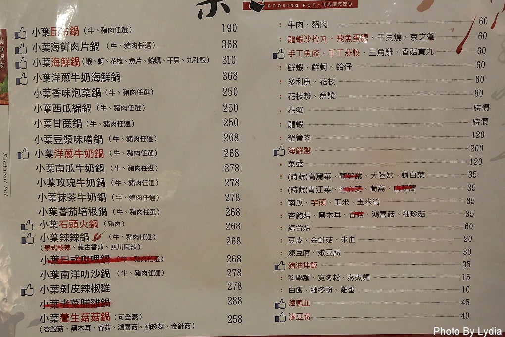 個人覺得「小葉鍋物」火鍋湯頭還不錯,牛肉也在水準上,海鮮跟配菜都滿新鮮的,