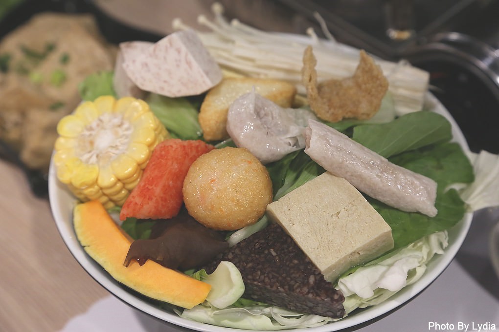 每份火鍋會附上一份菜盤,菜盤火鍋料都是一般常見的火鍋料,餃類是手工的,菜量不少也滿新鮮的。