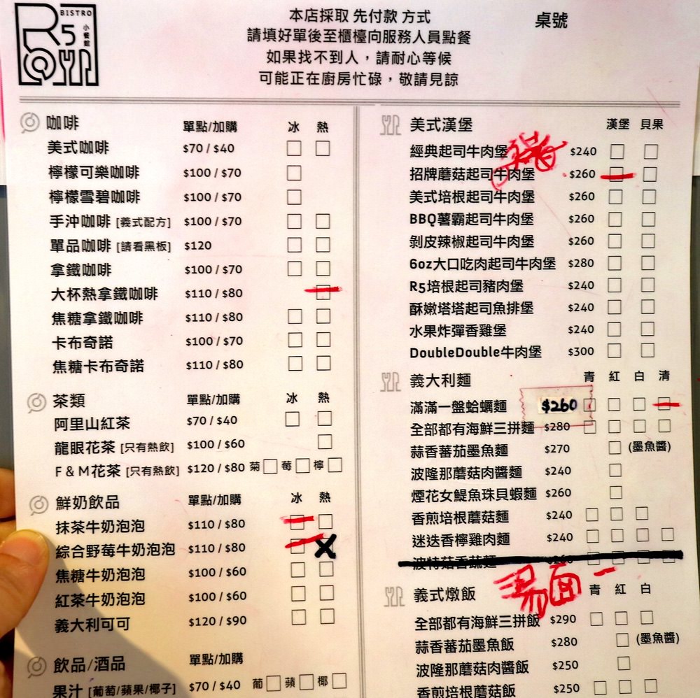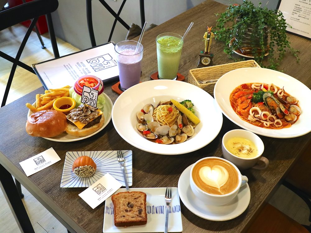 『R5小餐館』於午茶時段提供飲品&甜點,正餐時段則有漢堡/義大利麵/燉飯/小點心的選擇。