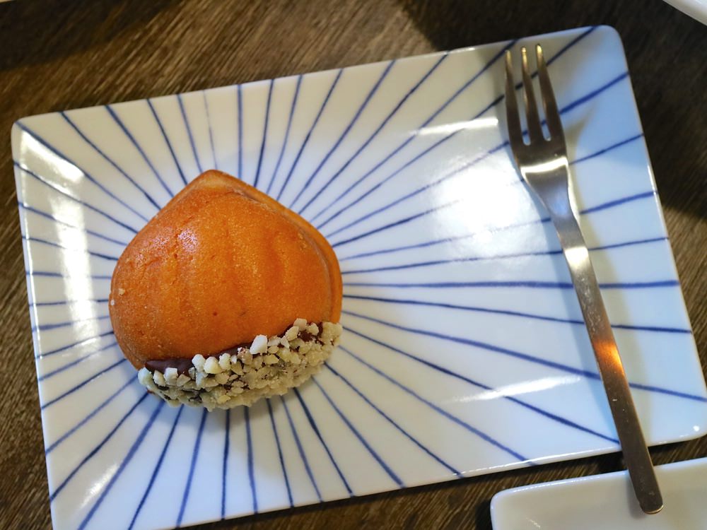 這次品嚐到的是『檸檬栗子蛋糕』,擁有小巧可愛的栗子造型,蛋糕本身則是檸檬口味,淡雅的檸檬香氣和酸甜,也很不錯唷!