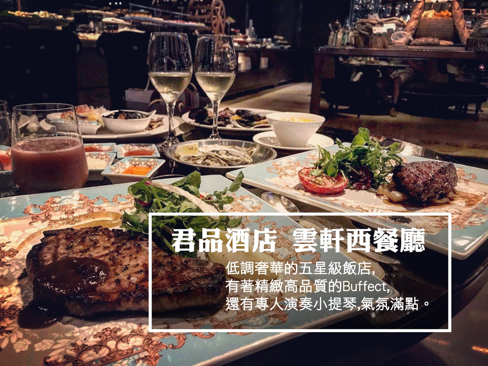五星級的君品酒店有著法式的低調浪漫奢華,氣氛滿點,還有專人演奏小提琴! 餐點海鮮也十分精緻,來看看豐富的Buffect有什麼好料吧!