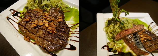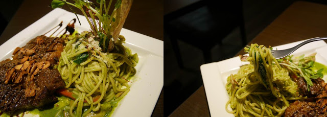 熱那亞青醬義大利麵佐海鹽沙朗牛排