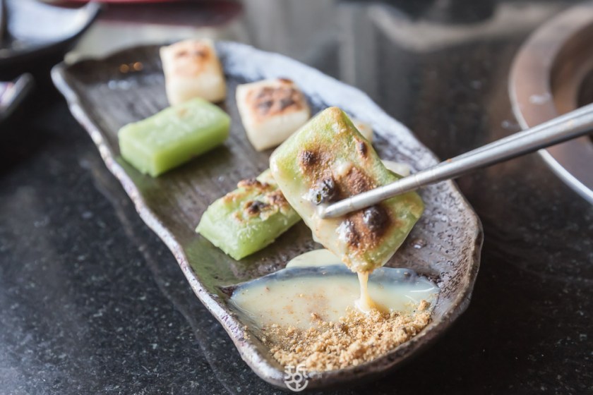 外皮脆脆焦焦的、裏頭QQ的,沾上煉乳和花生粉食用,還不錯。