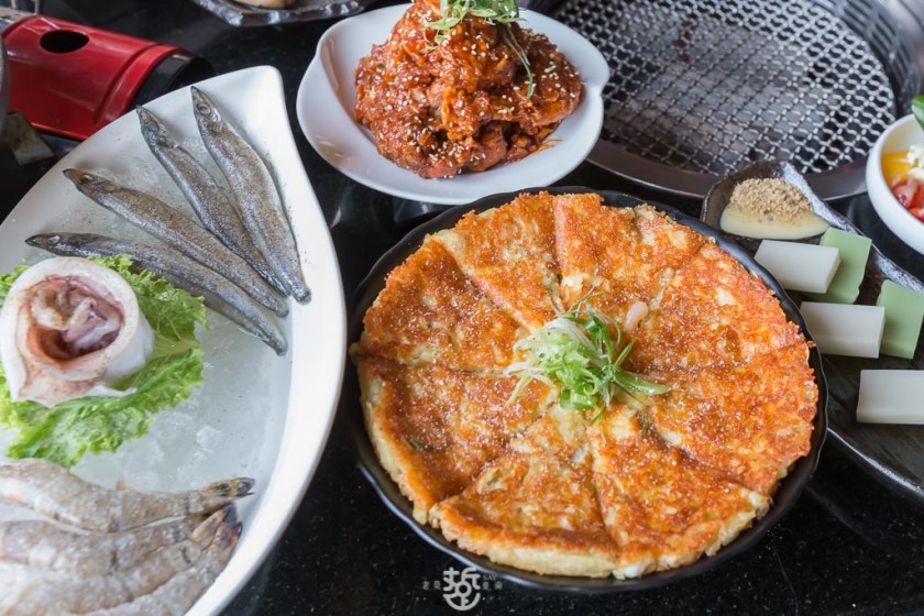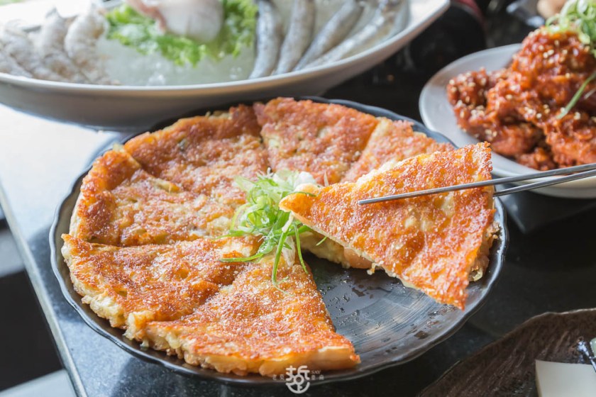 另有泡菜煎餅可二選一。海鮮煎餅有花枝、蔬菜和蝦仁。口感比大阪燒扎實,比中式蔥抓餅軟。必較接近泰式月亮蝦餅。