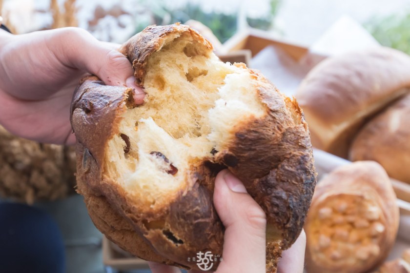 義大利天然酵母小水果麵包(65元),口感相當綿密鬆軟,捏一捏 也是會恢復原狀。
