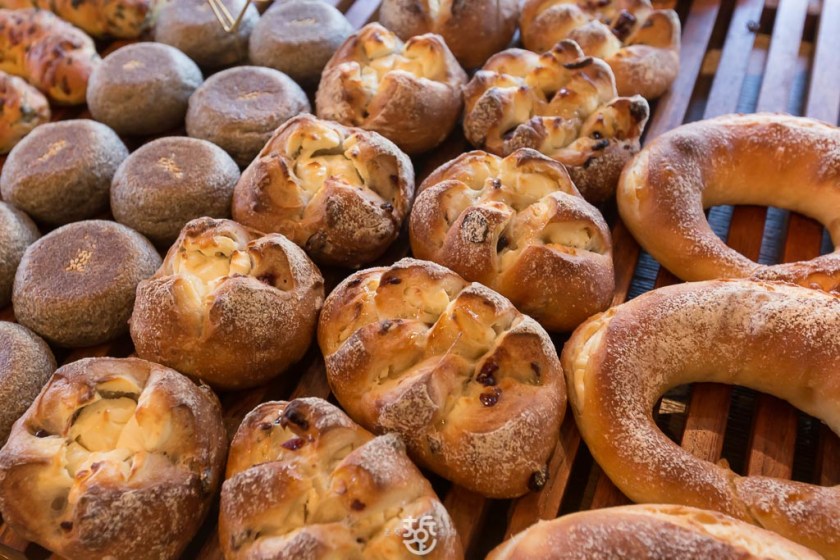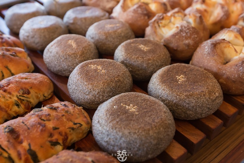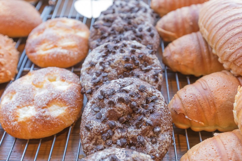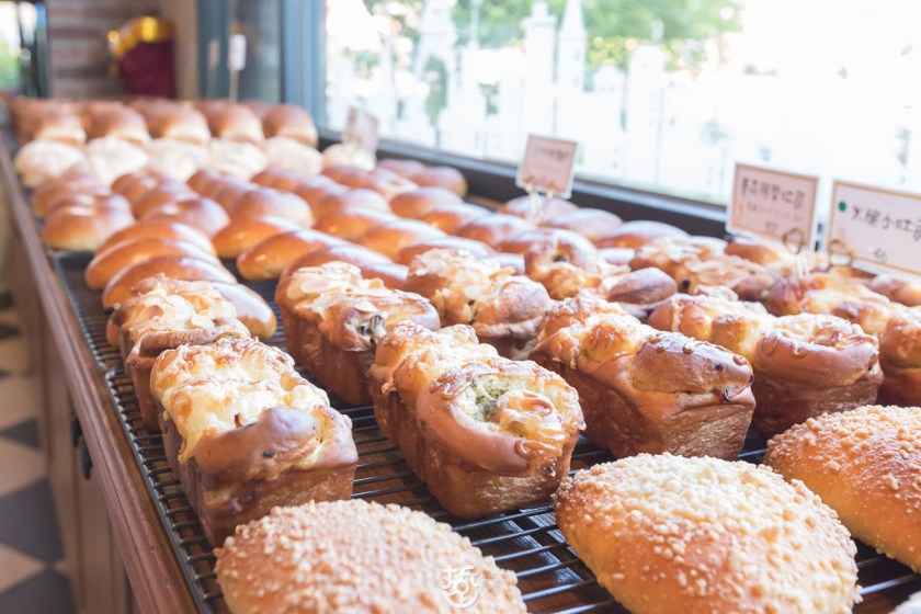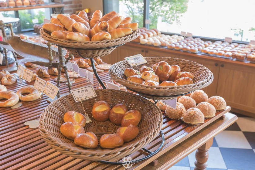 每天出爐的麵包的種類,多達數十種,軟的硬的都有,選擇相當多元。