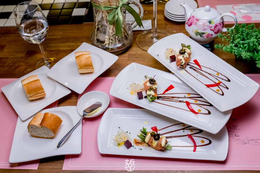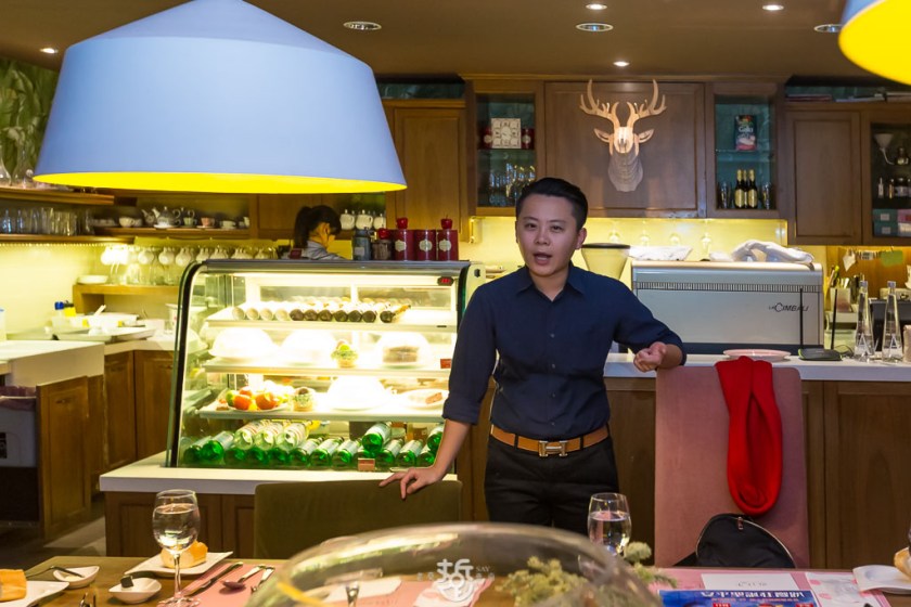 這次愛大牛特別委由瑪莉洋房推出客製化和牛菜單,讓喜歡吃高級和牛的饕客們,不必飛日本,也能在台南安平品嘗到頂級的近江牛。用完餐,主廚出來跟大家說明這次的料理概念以及介紹另一套餐