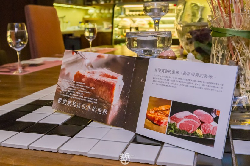 主菜端出來前,廚師特別將近江牛的生肉拿出來,給與會的部落客拍照。果然是油脂如雪花白,肉色如桃子紅。