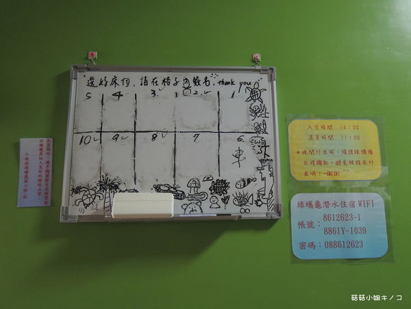 牆面上貼有簡單的注意事項、WIFI的帳號密碼