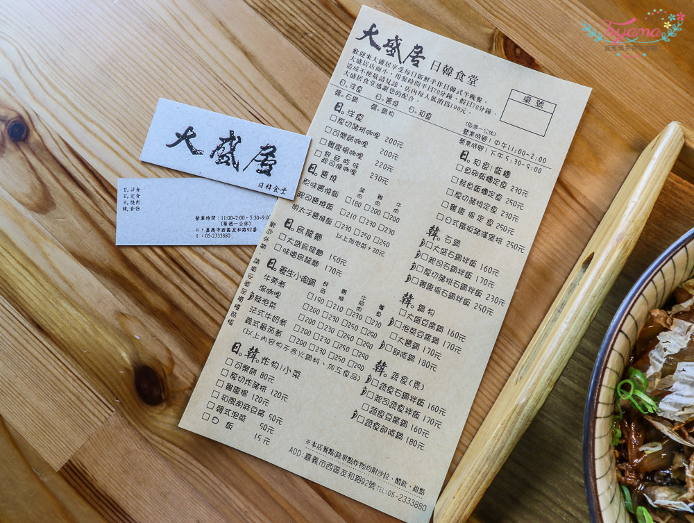 在嘉義有間提供日式+韓式料理且CP值很高的人氣餐廳「大盛居日韓食堂」,日式韓式我都愛,這次不用決擇了,來這裡用餐就搞定啦!!消費從150元到鍋物290元,皆附沙拉、醋飲、甜點,讓你吃得滿意又省荷包…快~快~來看我吃了什麼??