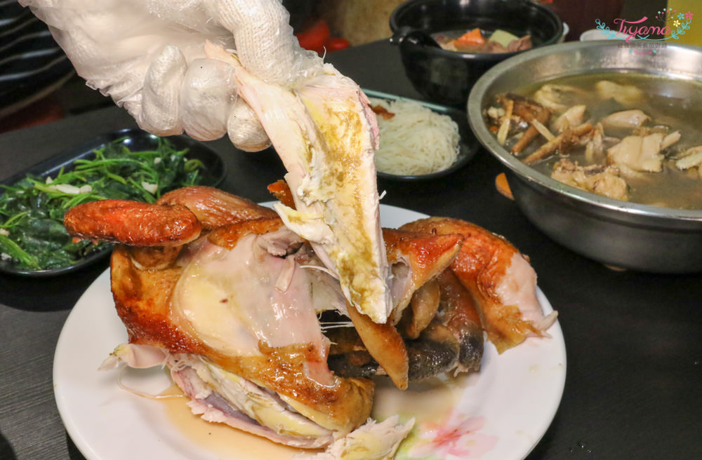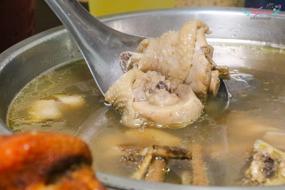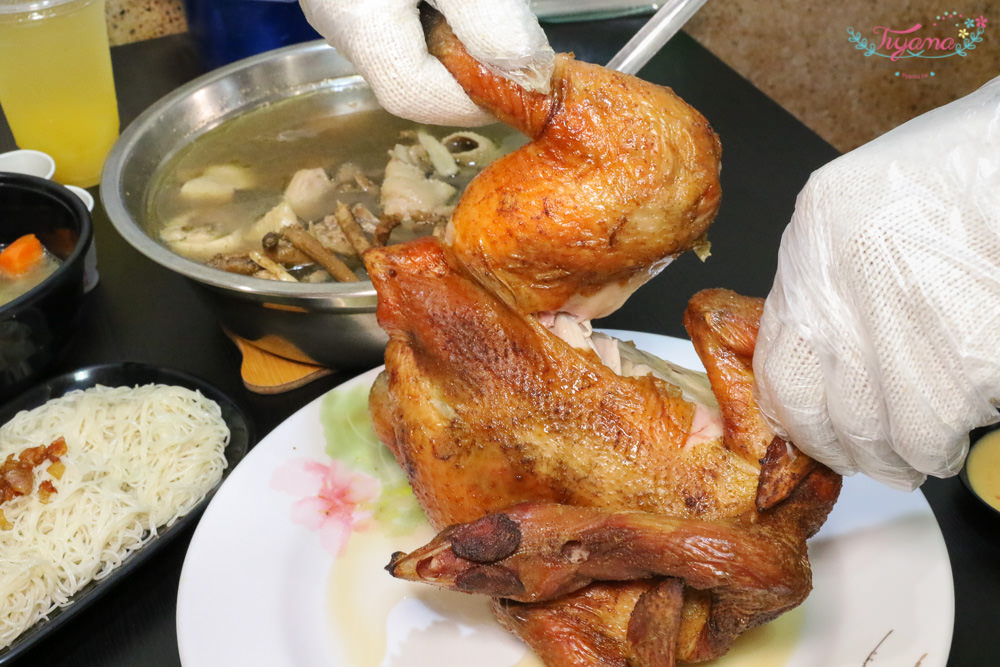 就是這隻嚴選3斤半以上的放山土雞桶仔雞,讓我想到安平就想來吃它,看看這下方”承接盤”,將整隻雞的精華全部保留起來(流口水中)。