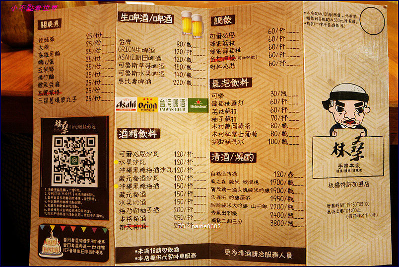 高雄小有名氣的林桑手串本家開到板橋來了!位置就在以前的六根居酒屋.關東煮(就是老闆娘像孫芸芸的那家,已歇業)同店面,致理技術學院後門而已唷!今天跟一群朋友一起來吃,幾乎快要把菜單吃過一輪,本篇算是差不多可以當作「實際餐點照片」指標(哈哈)。林桑串燒的價位其實算是相當平價的那種,不僅是串燒,還推出便宜大碗的丼飯,還有鰻魚雙拼丼飯等多樣選擇。