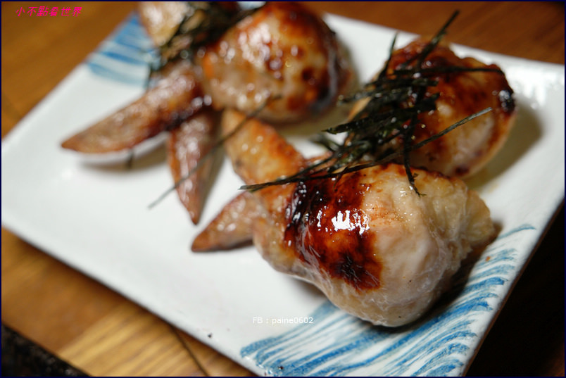 明太子雞翅,兩個NT.140。這個咬下去明太子會爆漿!這已經是日式串燒店裡面一定會出現的一道菜囉!
