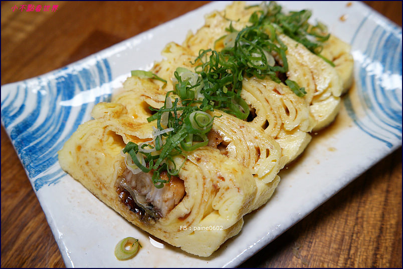 鰻魚蛋捲,NT.100,考驗師傅卷蛋捲功力的一道菜。這道我倒是覺得比串燒鰻魚好吃,因為我愛吃煎蛋,其實。