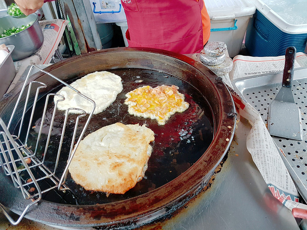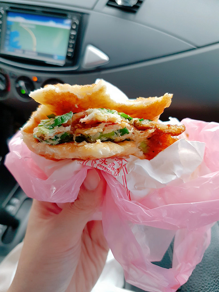 這天跟幼幼到頭城洽公,想說順道去漁港走一走,看到了一間沒有名字的蔥油餅,又有人在排隊,就也跟著去排了(好愛湊熱鬧!),心想在宜蘭蔥油餅基本上都不會難吃到哪裡去所以很放心地排哈哈