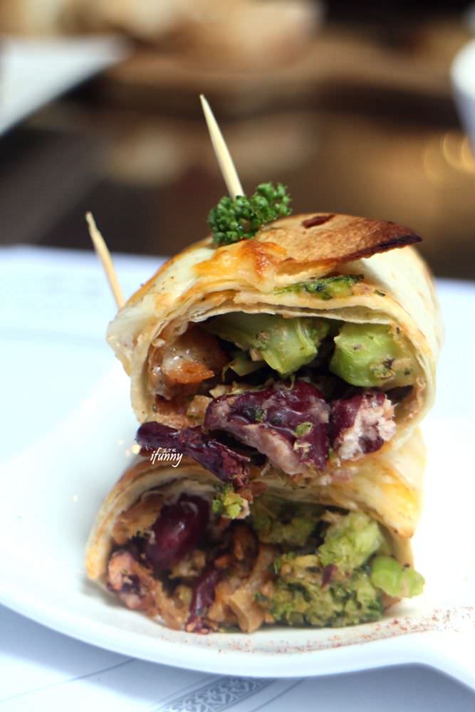 帶著Q勁的墨西哥捲餅,餡料是具豐富口感的蔬菜,兼具營養及美味的一道料理。