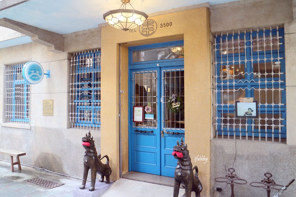 特有的八角窗與氣窗,漆上了藍色與白牆相應出屬於現代的討喜色澤。